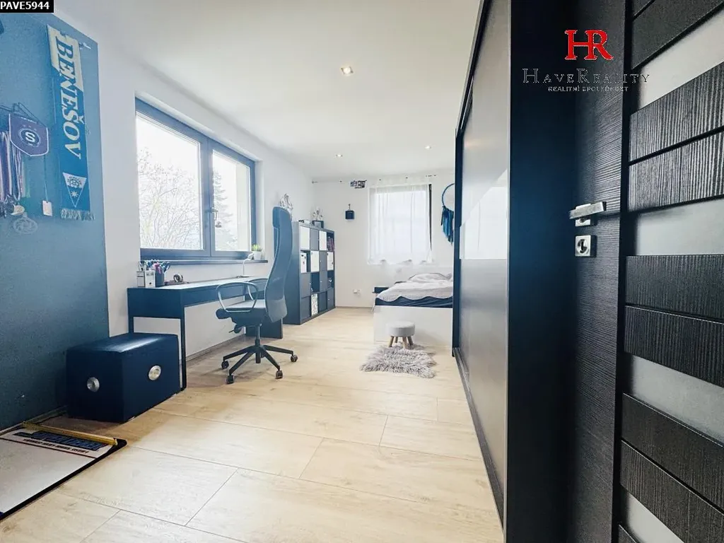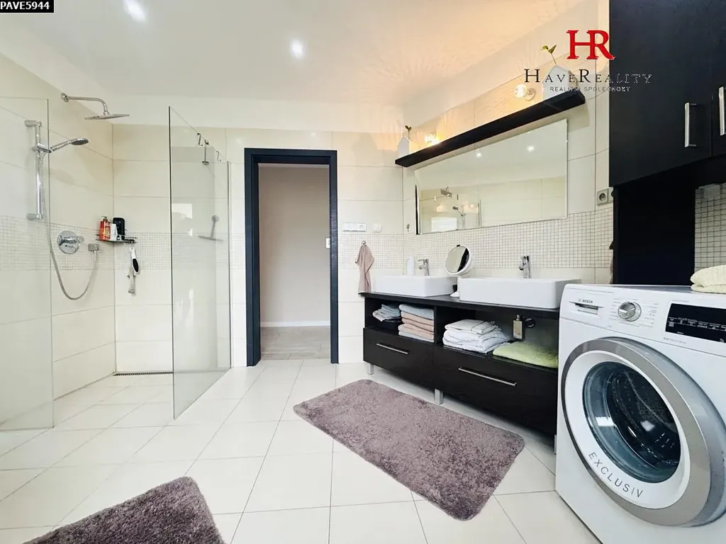 Dovolujeme si Vám nabídnout s okamžitou platností do pronájmu luxusní, plně vybavený rodinný dům 5+KK, obytné plochy cca 200 m2 se zastřešenou terasou cca 15 m2 a přilehlou založenou zahradou cca 824 m2. Dům se nachází v obci Jírovice, vzdálené cca 3,5 km od Benešova. K domu náleží garáž pro 2 automobily. Dům byl kolaudován v roce 2013 a je napojený na vlastní studnu a ČOV s nádrží na užitkovou vodu (25 m3) a napojením na automatickou závlahu zahrady zn. Rain Bird. Bazén na zahradě s filtrací a vlastním tepelným čerpadlem. Stavebním materiálem domu je cihla s integrovanou izolací, okna jsou plastová 3 skla, vybavená elektrickými předokenními roletami a sítěmi proti hmyzu. Dům je připojen na tepelné čerpadlo, které zajišťuje vytápění domu i ohřev TUV. Akumulační zásobník TUV má 190 l. Všechny místnosti mají podlahové teplovodní vytápění, což je velice příjemné a komfortní. Podlaha v domě je keramická dlažba. Dispozičně je dům členěn na přízemí: vstupní chodbu, garáž pro 2 automobily (40 m2), technická místnost a šatna a v patře jsou umístěny: prostorný obývací pokoj s krbem, východem na terasu, kuchyňským koutem vybaveným vestavnými spotřebiči: (myčka, mikrovlnná trouba, pečící trouba, lednice s mrazákem, digestoř s osvětlením a odtahem ven, indukční varná deska, 4 samostatné pokoje, koupelna s vanou a 2 umyvadlem, prostorným sprchovým koutem a WC a samostatná toaleta s umyvadlem. Ve 4 místnostech je k dispozici termostat k regulaci tepelné pohody. Veškeré vybavení domu připravené pro využití nájemcem! Na chodbě je domovní videotelefon. Dům je připojen na zabezpečovací zařízení Jablotron. Internet O2, kabelem. Štítek PENB třída „B“ – velmi úsporná. Požadované měsíční nájemné činí 40.000,- Kč + záloha na elektřinu ve výši 5.000,- Kč měsíčně. Elektrickou energii si nájemce přihlásí na sebe. Jistota (dříve „kauce“) činí 60.000,- Kč. Provize pro RK činí 1měsíční nájemné. Dům je situován na klidném místě s minimem rodinné zástavby a má krásný daleký výhled do krajiny. V obci je zastávka autobusu směr Neveklov a Bystřice. V nedalekém okolí se nachází golfový areál Golf Resort Konopiště, kde můžete navštívit wellness, restauraci s výbornou kuchyní a golfová hřiště. Velmi dobré dopravní spojení do Prahy. Nabídka je určena nekuřákům bez zvířat. Jedná se o dlouhodobý pronájem. V případě Vašeho zájmu o prohlídku nemovitosti nás kontaktujte na uvedeném telefonním čísle.