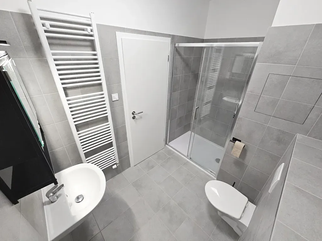 2) koupelna s WC (4,3 m²) a prostorným sprchovým koutem (po dohodě možné zařídit pračku)
