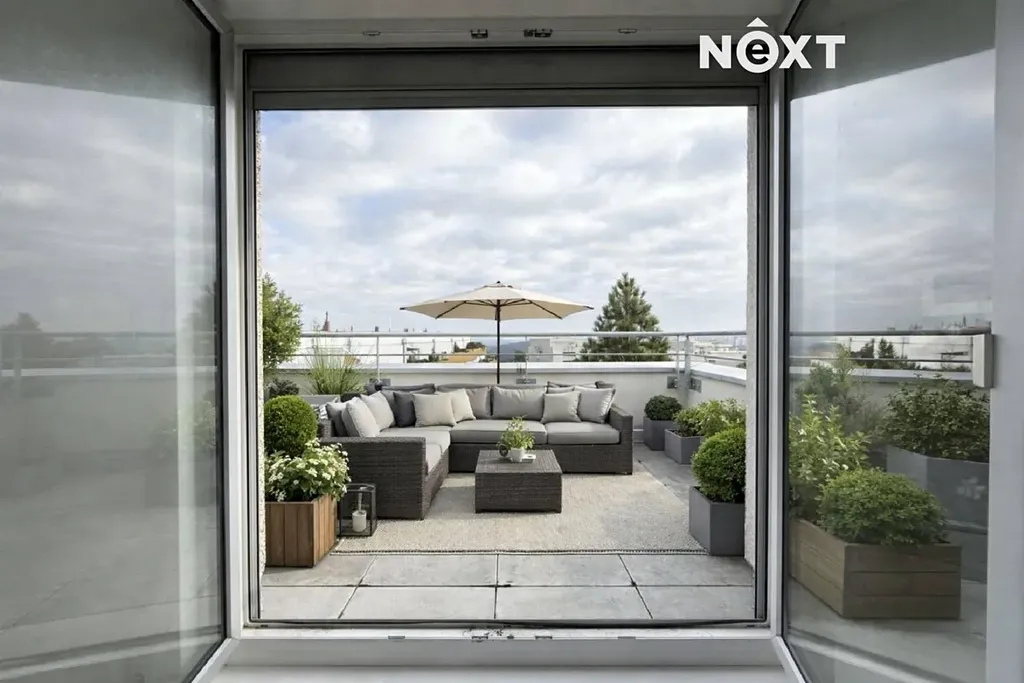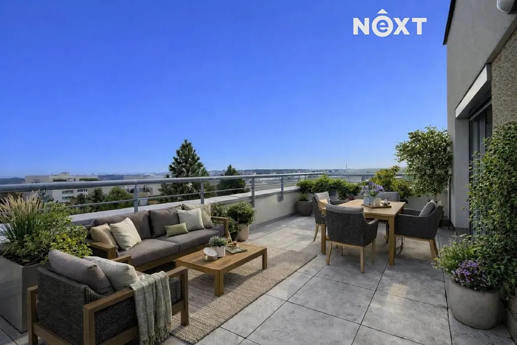 Byt je ve třetím, předposledním patře. Na terasu nejde vidět od sousedů, ani z okolních domů.