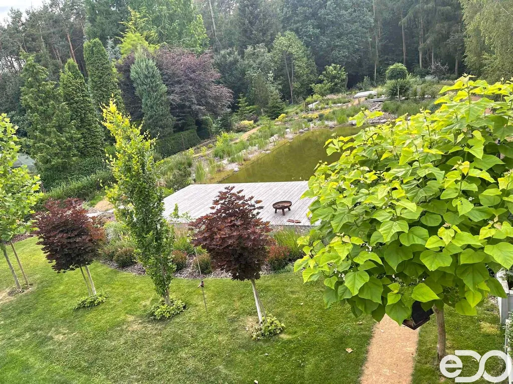 Dominantou nemovitosti je prostorný obývací pokoj s kuchyňským koutem a přímým vstupem na velkou terasu, která navazuje na udržovanou zahradu. Ta poskytuje dostatek soukromí, nachází se zde okrasné jezírko i zázemí pro děti. Údržba zahrady je nenáročná – stačí pravidelné sekání trávy, o začátek a konec sezóny i průběžnou péči se stará majitel.