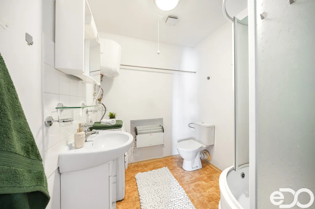 K bytu náleží sklepní kóje a k dispozici jsou i společné úložné prostory na patře (např. na lyže). U domu je navíc společná garáž, kterou lze využít k parkování nebo uskladnění věcí.