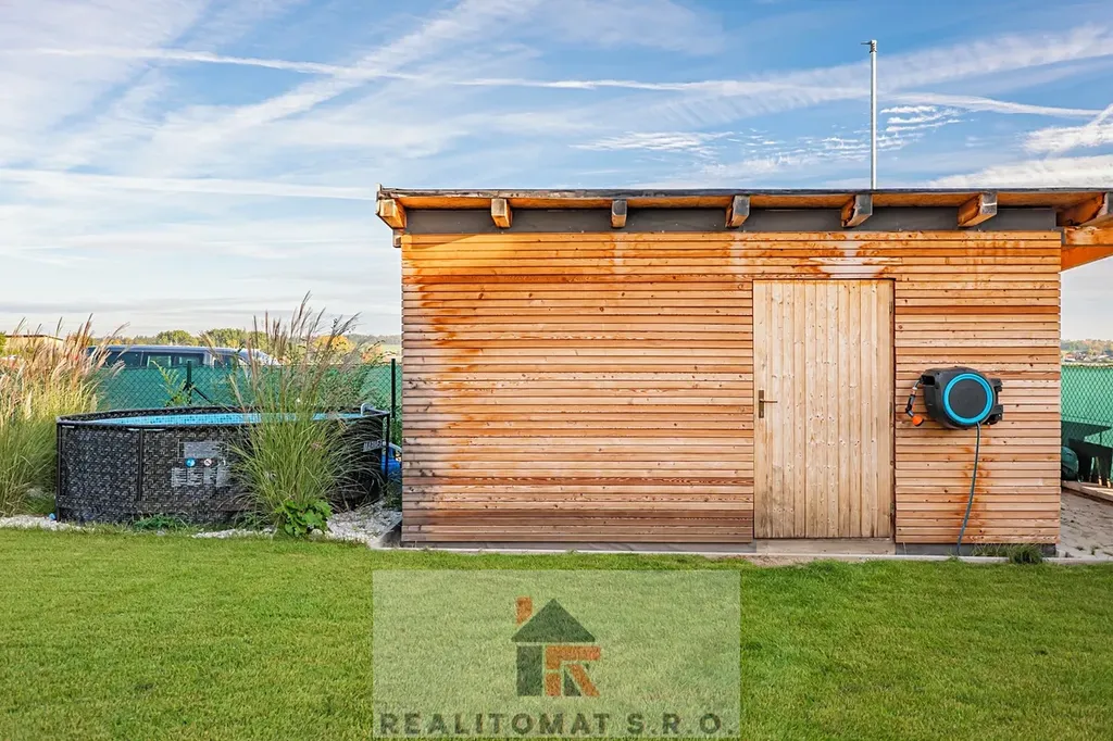 Pozemek o celkové velikosti 360 m² nabízí příjemnou zahradu přímo propojenou s obývací částí a prostornou terasou ideální pro relax i rodinné posezení.