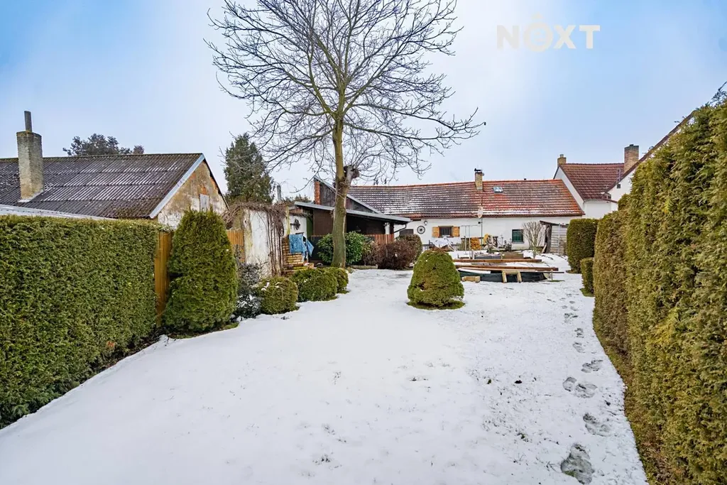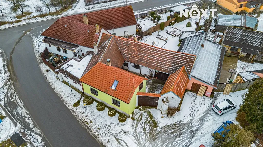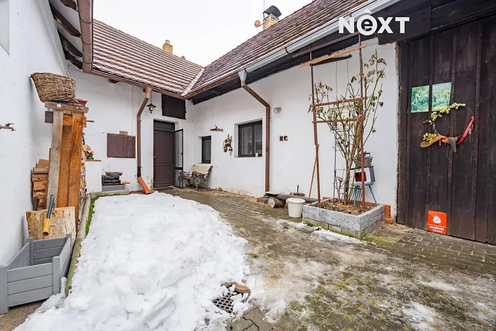 Nemovitost je vystavěna kolem uzavřeného dvora, který poskytuje maximální soukromí a typickou atmosféru venkovské usedlosti. Na dvůr navazuje garáž s dílnou, a dále vstup na oplocenou zahradu o výměře 282 m².