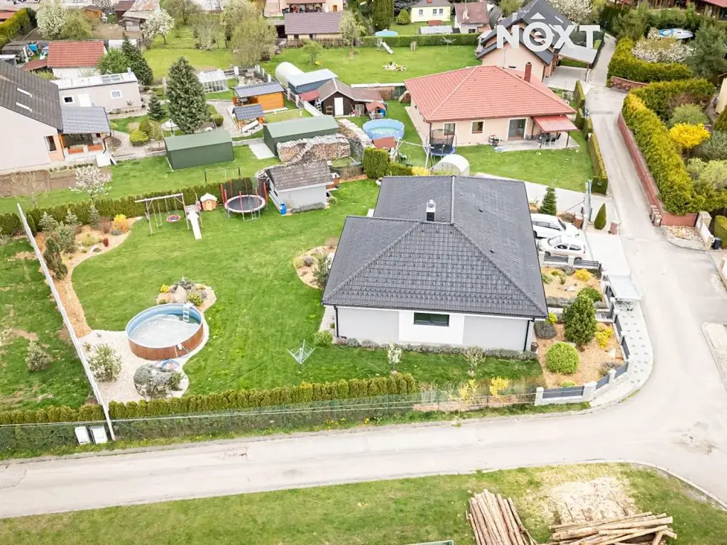 Nabízím k prodeji rodinný dům se zahradou. Dům byl zkolaudován v roce 2015, má dispozici 3 ložnice, obývák je součástí kuchyně a účelového kuchyňského koutu. Podlahová plocha o rozměrech 119 m2 s koupelnou a dvěma WC , technickou místností a garáží, dostatečně splňuje veškeré potřeby, náročnost a pohodlí velké rodiny. Vytápění domu je řešeno podlahovým topením, teplo zajišťuje tepelné čerpadlo tzv. země-voda, stejně tak ohřev vody. V obývacím pokoji je možné využít k vytápění také krb, ten není s rozvodem do radiátorů. Kuchyň má vestavné spotřebiče, konkrétně varnou desku, myčku, troubu a mikrovlnnou troubu. Majitelé nabízejí dům i s vybavením, kromě vybavení dětských pokojů, které není součástí nabídky. V domě jsou podlahy z pvc (dětské pokoje a ložnice), v obýváku a v kuchyni je z praktických důvodů dlažba. Okna jsou plastová, trojsklo, v obýváku, v ložnici a v dětském pokoji je francouzské okno, všechna okna mají praktické předokenní rolety. Krov je trámový a konstruovaný tak, aby bylo možné případně dodělat využitelné podkroví. Na střeše jsou tašky KM Beta, komín má pravidelné revize. Dům je zateplený. Roční náklady na provoz domu jsou cca 35 tisíc. Z domu je vstup do zahrady francouzským oknem přes terasu, na zahradě je zahradní domek na nářadí, součástí zahrady je také studna s elektrickým čerpadlem na zalévání. Dům je napojený na vodovod a kanalizaci. V domě je připojení na wifi. Přestože je dům v zastavěné části obce, zahrada zajišťuje soukromí a klid pro relaxaci a odpočinek. Kromě prodejního a poprodejního servisu zajistíme případným zájemcům i profesionální finanční poradenství. Více info v RK. Pro komunikaci uvádějte evidenční číslo zakázky N106307.
