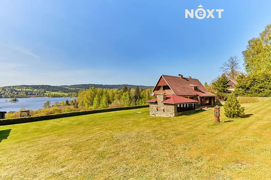 Exkluzivně nabízím k prodeji nádhernou chalupu na ještě nádhernějším místě s výhledem na jezero Lipno. Chalupa je s péčí švýcarských hodinářů budována od konce 80. let včetně kompletního vybavení. Na zastavěné ploše 93m2 se vypíná unikát o dispozici 41 a obytné ploše 141m2. Na pozemcích o celkové výměře 9378m2 se dále nachází jezírko s přirozeným přítokem s okolních lesů, rafinovaně zabudovaná dvougaráž do sklonu terénu a nádherný kamenný altán pro grilování s přáteli a opět krásným výhledem na jezero a Králičí ostrov. Obrovským potenciálem je pozemek 9378m2, který je z velké části zastavitelný dalšími stavbami. Přístup na koncový pozemek je z obecní komunikace. Jedinečná chalupa je vytápěná vybudovaným krbem v obývacím pokoji. Doporučuji osobní prohlídku tohoto krásného místa. Pro komunikaci uvádějte evidenční číslo zakázky N105173.