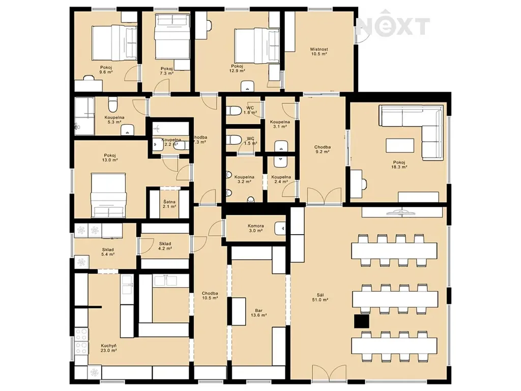 Nabízíme k prodeji výjimečný komerční areál v kategorii ubytování, gastronomie a wellness, nacházející se na adrese Soukeník 101/53, Sezimovo Ústí, v bezprostřední blízkosti fotbalového stadionu a sportovního areálu.