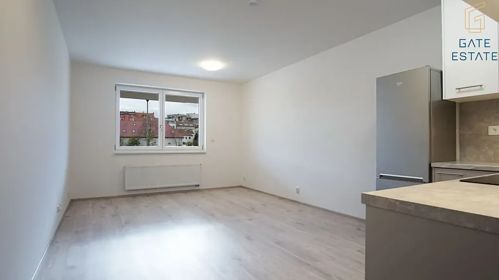 Byt je velice příjemný, útulný a světlý. Skládá se ze vstupní předsíně, koupelny a obývacího pokoje. Obývací pokoj s kuchyňskou linkou, která disponuje indukční varnou deskou, troubou, digestoří, lednicí a spoustou úložného prostoru, které poskytují kuchyňské skříňky. Zbylou část pokoje si můžete vybavit podle svých představ.