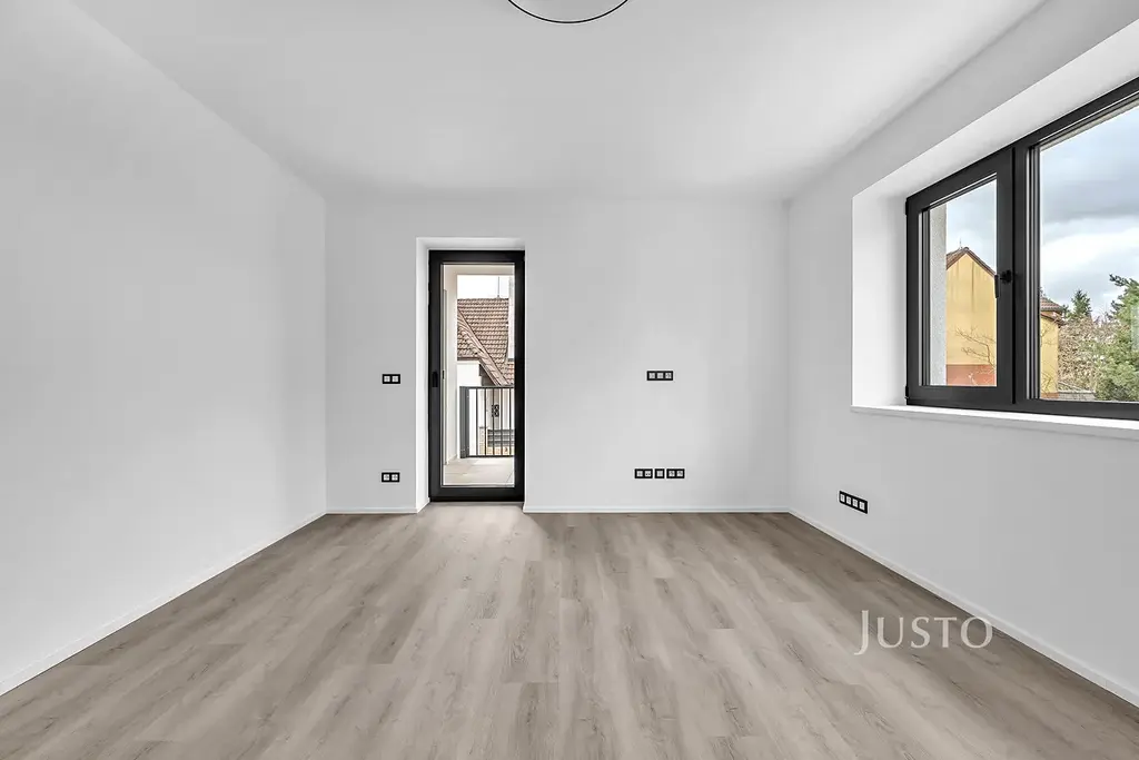 Nabízíme k pronájmu prostorný byt 3+kk o celkové užitné ploše 79,6 m² s terasou 4,5 m² v novostavbě na adrese Na proutcích 239, Praha 4 – Šeberov. Byt se nachází v 1. nadzemním podlaží samostatně stojícího domu v klidné části obce. Součástí pronájmu je také sklep o velikosti 4,5 m² a vlastní venkovní parkovací stání. Druhé parkovací stání lze pronajmout za částku 2.500Kč/měs.