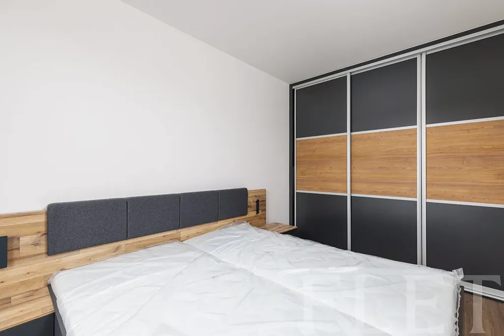Tento světlý byt o dispozici 2+kk je pro vás již částečně zařízen základním nábytkem a nezbytnými spotřebiči v kuchyňském koutě, který je součástí hlavní místnosti. V té je dostatek místa pro jídelní i obývací část a dostanete se z ní na balkon s příjemným výhledem do klidné ulice a okolní zástavby. Ložnice je již vybavena postelí a na míru vestavěnou skříní. Součástí koupelny se sprchovým koutem je toaleta a také pračka. V předsíni je botník a vstup do kumbálu s policemi, který zajišťuje další úložný prostor.