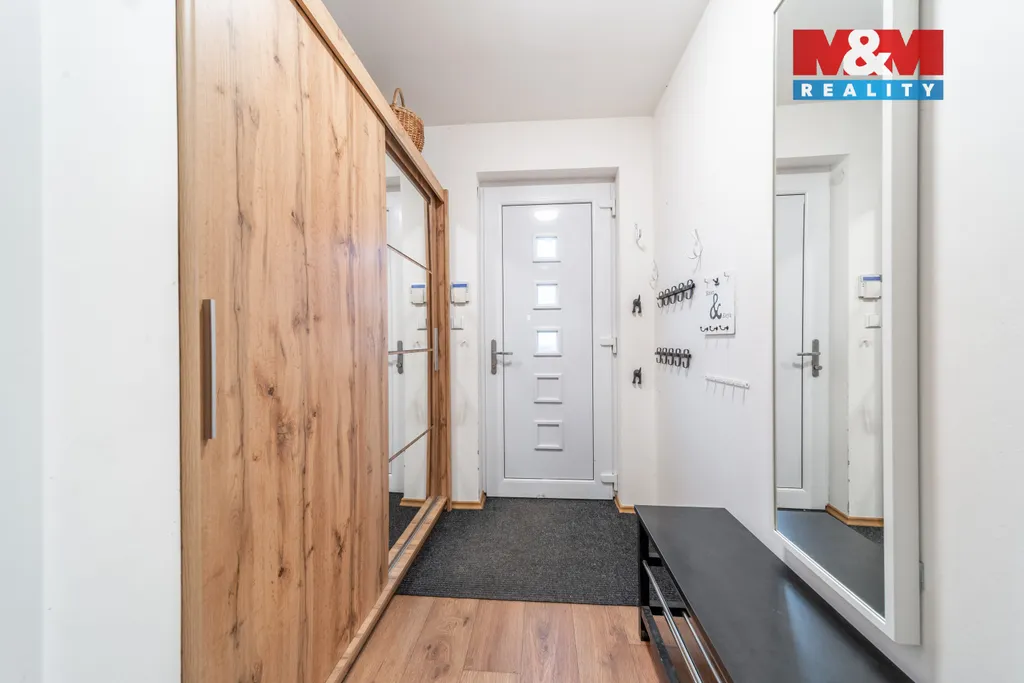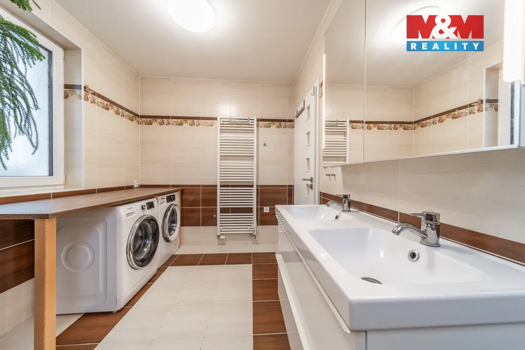 V přízemí domu se nachází předsíň s technickou místností, chodba, koupelna se sprchovým koutem a WC, komora, kuchyně s jídelním koutem a prostorný obývací pokoj s krbem na dřevo s výměníkem a vstupem na dvě terasy. Dále je zde menší ložnice či pracovna. V patře jsou tři samostatné pokoje, z nichž jeden má vstup na balkon, koupelna s vanou a místem pro pračku a sušičku, samostatné WC, komora a vstup na půdu.