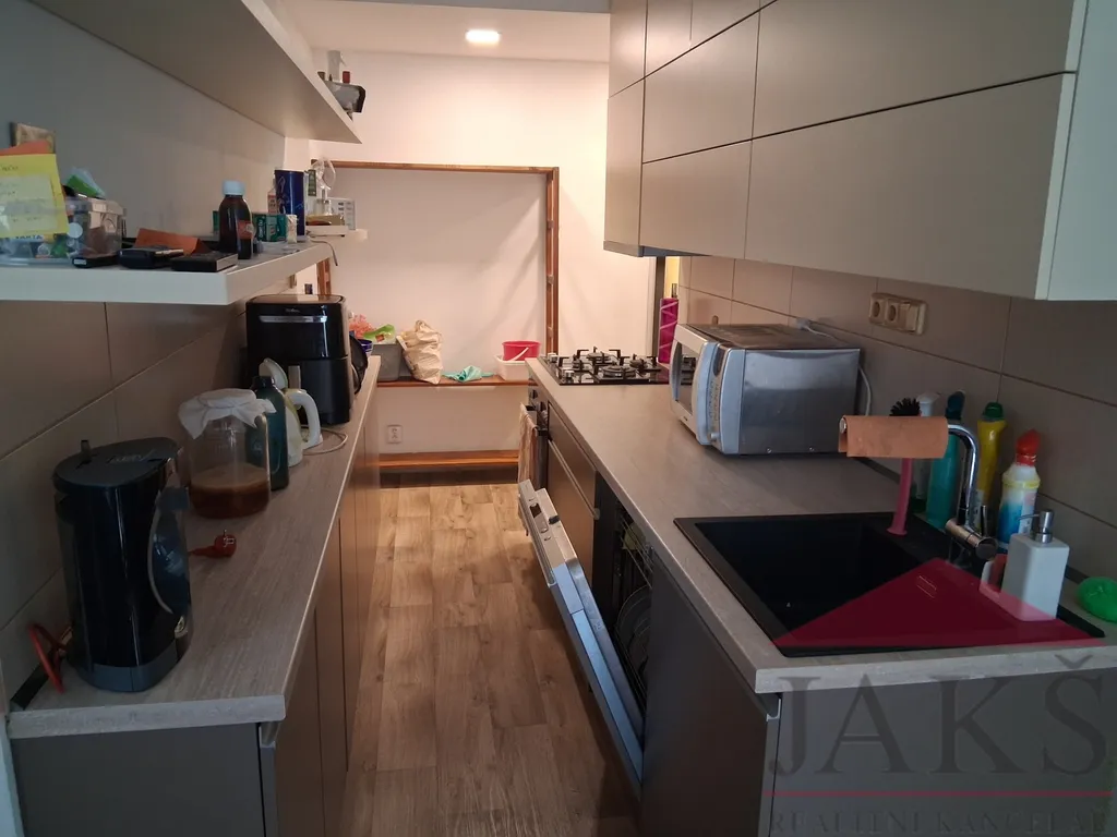 Kuchyně je včetně všech vestavných spotřebičů. Bytová jednotka nabízí svým obyvatelům ložnici, dětský pokoj, obývací pokoj, koupelnu s vanou a WC. Komora (úložný prostor) v bytě a samostatná komora přístupná ze společné chodby vedle bytu.