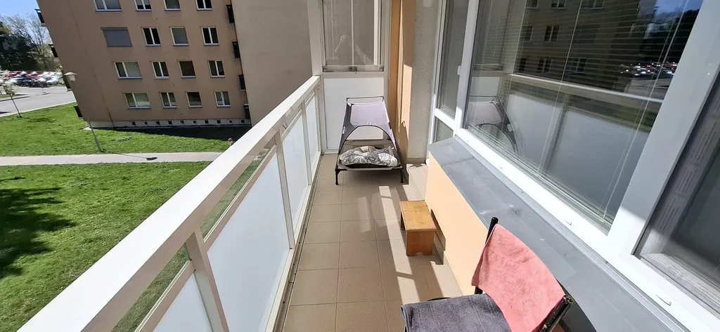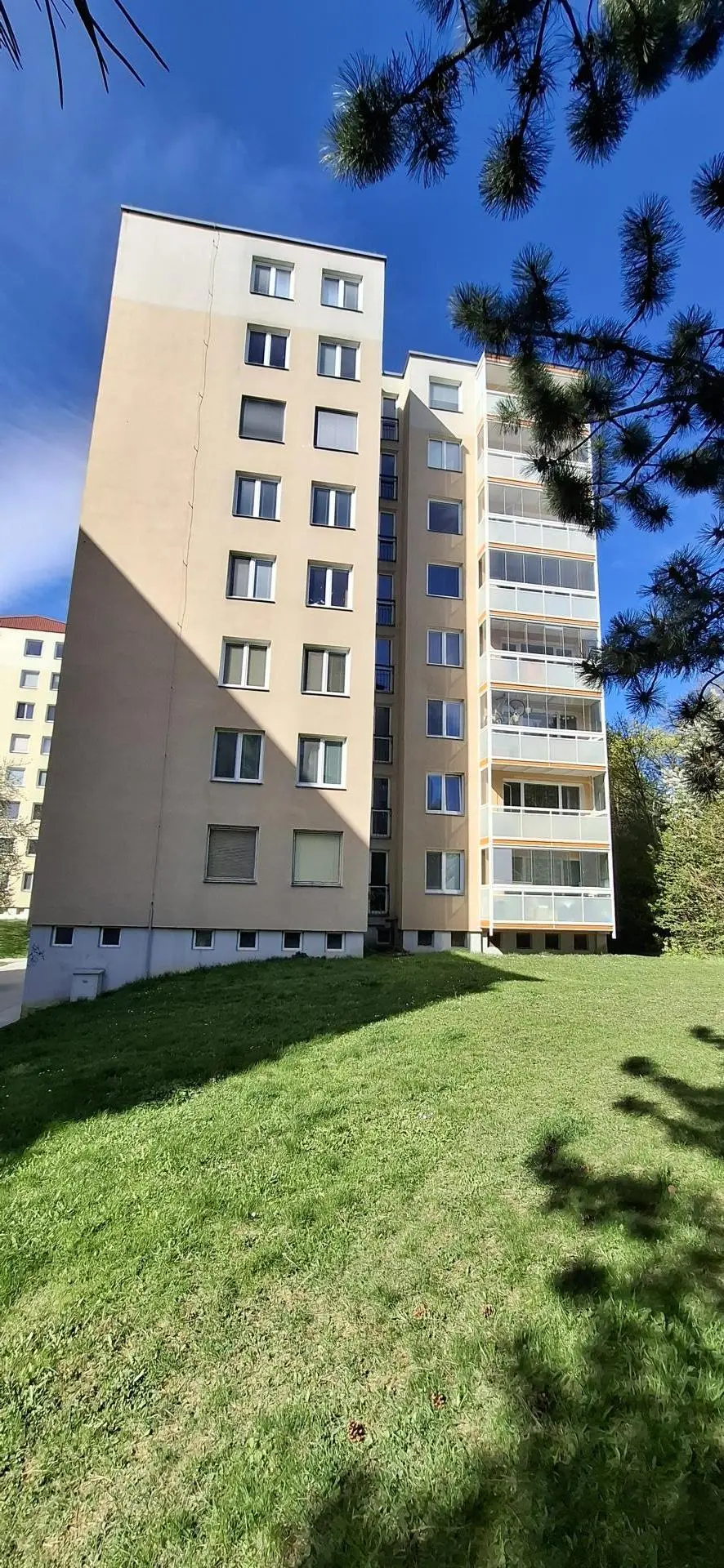 Ve výhradním zastoupení nabízíme prodej bytu v osobním vlastnictví o velikosti 3+1, Brno, Líšeň, ulice Josefy Faimonové, 3.NP/8.NP ( úroveň 2.patra), s novým výtahem, po částečné rekonstrukci a s orientací do zeleně. Celková plocha bytu 64m2, sklepní box + balkon 4,77m2. Dispozice: vstupní halová předsíň, samostatné vstupy do všech místností v bytě, pokoj, obývací pokoj se vstupem na balkon, ložnice, předsíň, koupelna s vanou, WC zvlášť, kuchyně. Rekonstrukce koupelny, WC ( zděné jádro ) a kuchyně ( novější kuchyňská linka) v roce 2006, elektřina nová 2006 ( koupelna, WC a kuchyně), podlahy dlažba a v pokojích původní lino, novější interiérové dveře, na balkoně dlažba. Dům po kompletní revitalizaci: plastová okna s orientací na jih ( obývací pokoj a menší pokoj) a sever ( kuchyně a ložnice ), včetně interiérových žaluzií, nová fasáda včetně zateplení, výtah, vstupní dveře, zvonky, schránky a střecha. Bezproblémové parkování u domu.