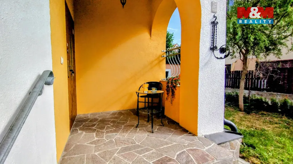 Vilka s romantickým balkonem se rozkládá na pozemku 323 m2 a má dvě parkovací místa.