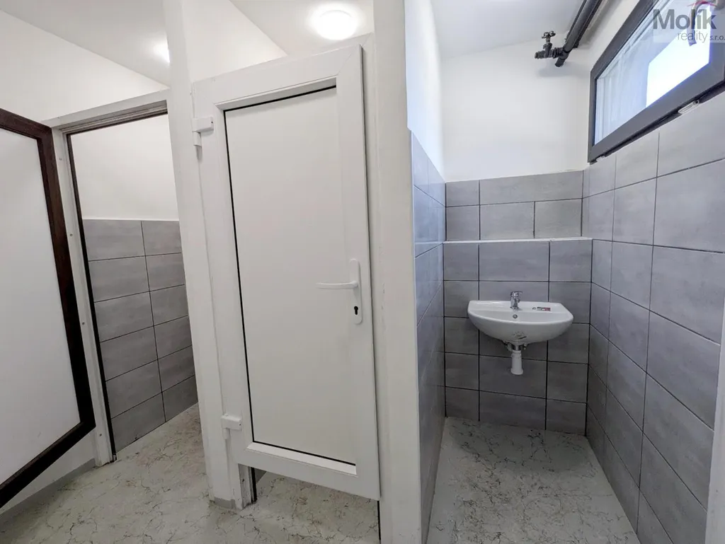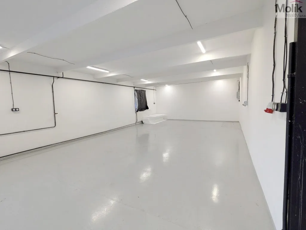 Prostory se nachází ve zvýšeném přízemí (1.NP) a jsou vhodné například na skladování materiálu či výrobu. Uskladnění těžších materiálů je možné zajistit vysokozdvižným vozíkem, který je k dispozici v areálu po domluvě s majitelem. Prostory jsou vytápěné kamny na pelety a tuhá paliva. Součástí pronájmu je místnost o velikosti 10 m2, která může sloužit jako kancelář, šatna, nebo kuchyňka a soukromá umývárna s WC.