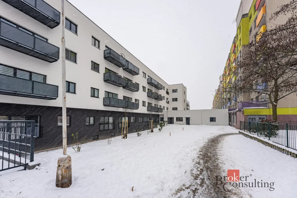Byt s podlahovou plochou 60,11 m² je situován v v přízemí cihlové novostavby s vlastním zadním vchodem, kde jsou jen dva byty se společnou předsíní, okna směřující do ulice. Kolaudace domu proběhla v roce 2025. Aktuálně je pronajímán, přičemž kompletní správu nájemního vztahu zajišťuje externí společnost, což z něj činí vhodnou investiční příležitost bez starostí. Parkování je možné přímo před domem.