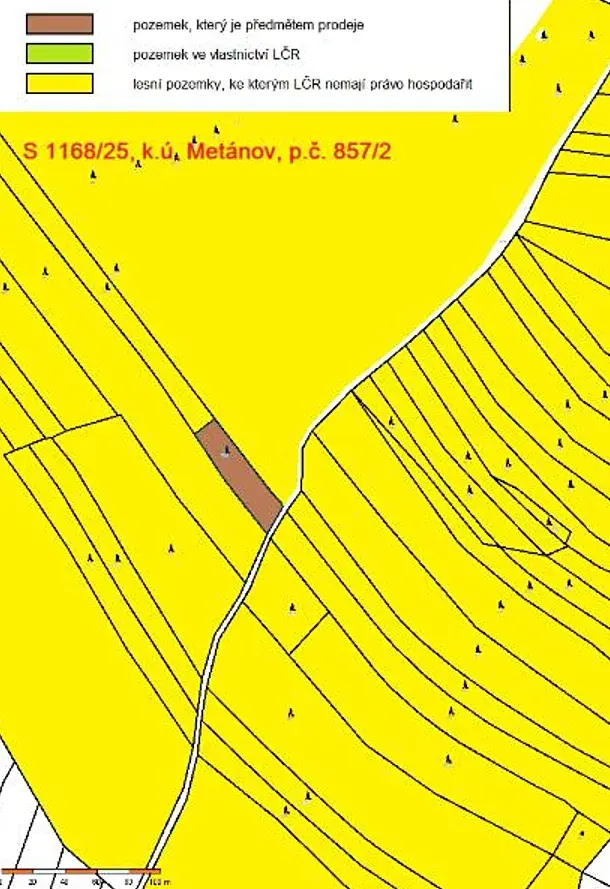 Jedná se o prodej lesního pozemku parc. č. 857/2 o výměře 1295 m2, situovaného západně od obce Metánov, uvnitř komplexu privátních lesů. Pozemek je zčásti vykácený, po těžbách je sníženo zakmenění, na pozemku roste několik borovic a smrků.
