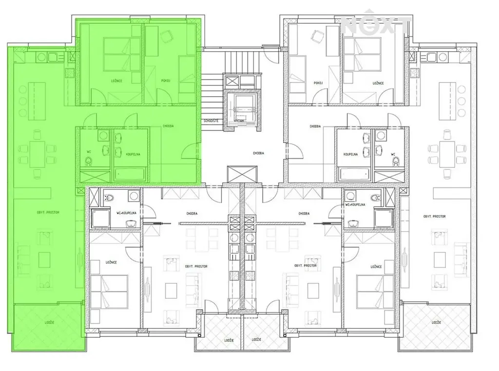 Prodej bytu 3+kk 95,13 m², terasa 9,29 m2, Zlín – Rezidence Lešetín I. | centrum města | novostavba | parkování a sklep v ceně, výtah