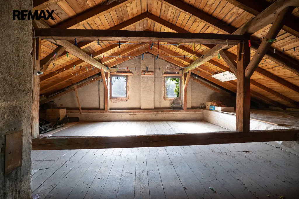 Objekt je v dobrém technickém stavu, plně obyvatelný, statika v pořádku, bez vlhkosti, původní krovy i trámoví zdravé.