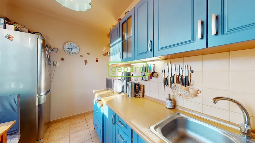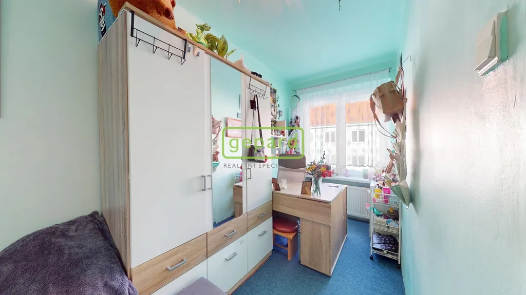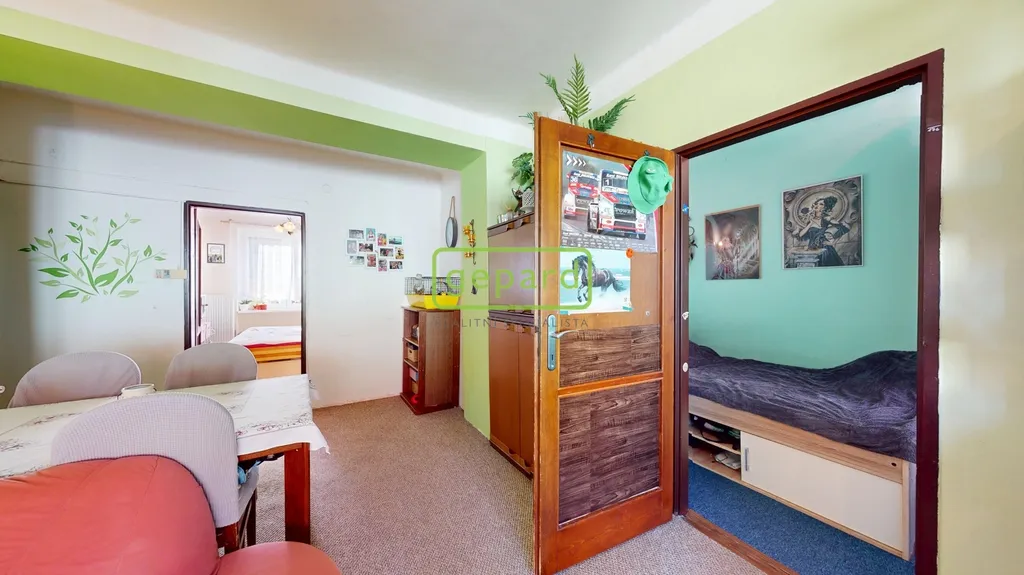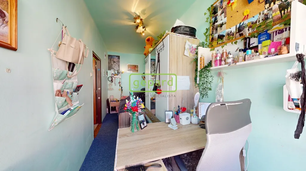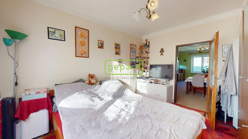 Dispozice bytu je prakticky řešena – obývací pokoj, dětský pokoj, ložnice, kuchyně, koupelna + WC a předsíň. Vytápění i ohřev vody zajišťuje vlastní plynový kotel, což umožňuje efektivní regulaci nákladů na energie.