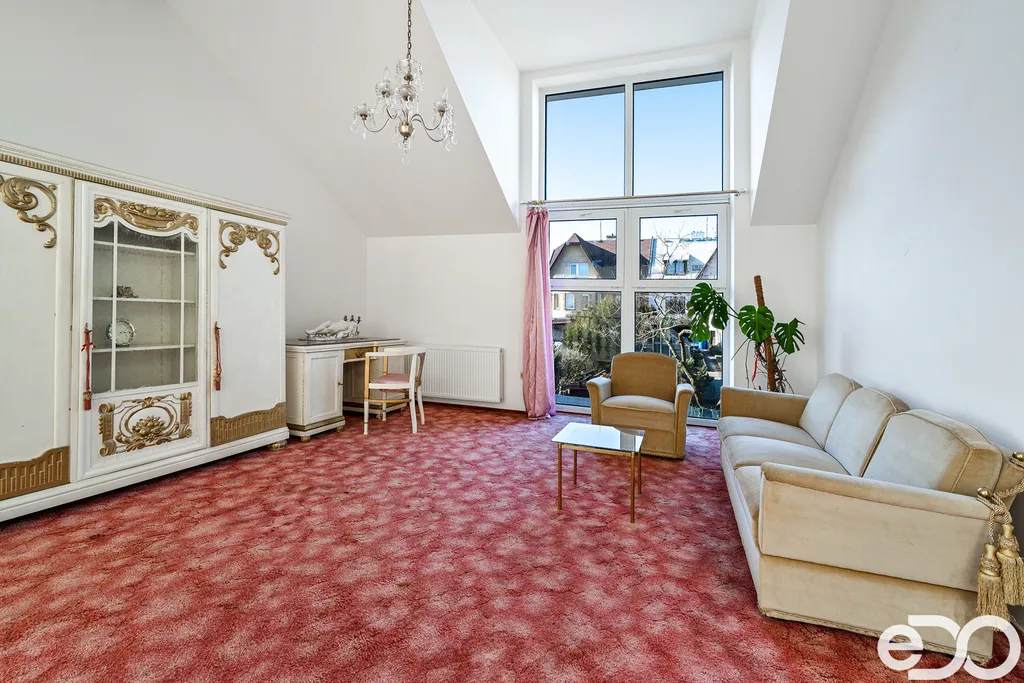 Obytná galerie v patře s velkoformátovým oknem umožňují, v případě potřeby, přepažení pro vznik dalšího samostatného pokoje.
