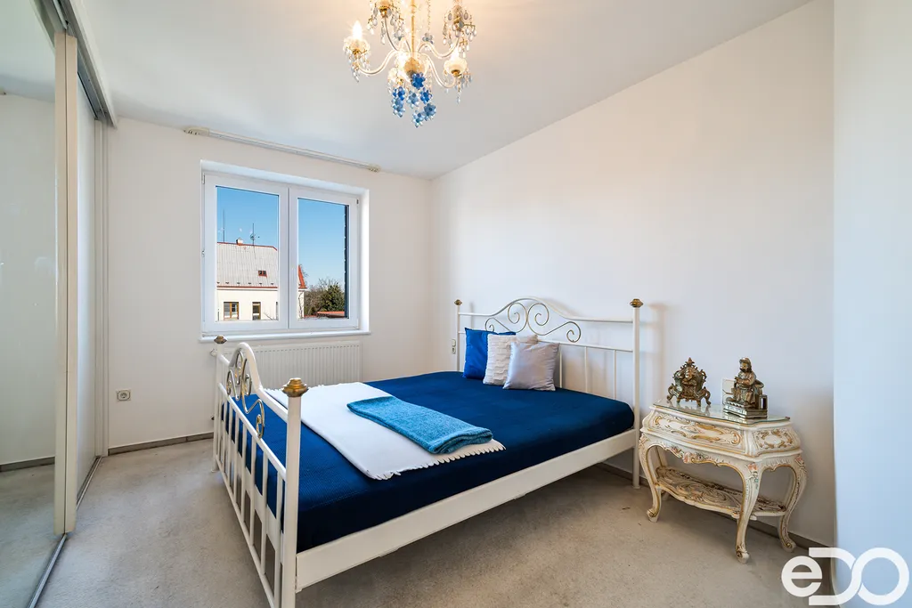 Samostatná garsonka má již odmontovánu kuchyňskou linku, vytápění a ohřev TUV zajišťuje centrální kotel.