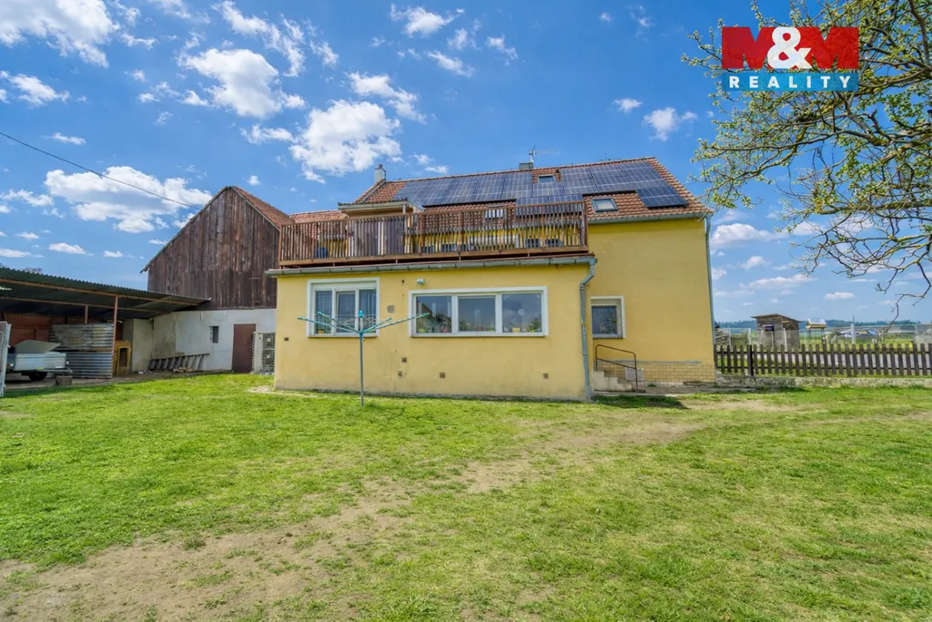 Nabízíme k prodeji slunný a prostorný dvougenerační rodinný dům o užitné ploše 197 m2 na pozemku cca 1.100 m2 v malebné obci Horní Kozolupy. Dům se skládá ze dvou nezávislých bytů, jsou zde 2 kuchyně, 2 koupelny a 2 samostatné toalety s tím, že přízemní byt je dispozičně řešen jako 2+kk a má výměru 104 m2 a byt v patře má dispozici 3+kk s výměrou 93 m2 ke kterému patří nadstandardně prostorný balkon ideální k relaxaci o výměře 22 m2. V domě je obytné podkroví, které může sloužit jako další pokoj a dále je zde sklepní prostor o výměře 25 m2. Ohřev vody je zde řešený bojlery a o vytápění domu se stará tepelné čerpadlo. Na střeše domu jsou nainstalovány solární panely. K domu také náleží další prostory jako je dílna, skladovací prostor, garáž a stodola. Dům je napojen na veřejný vodovod a elektrickou síť, odpady jsou svedeny do septiku. Tento dům je ideální pro zájemce, kteří hledají moderní bydlení blízko přírody. Veškerá občanská vybavenost se nachází v blízké dojezdové vzdálenosti.