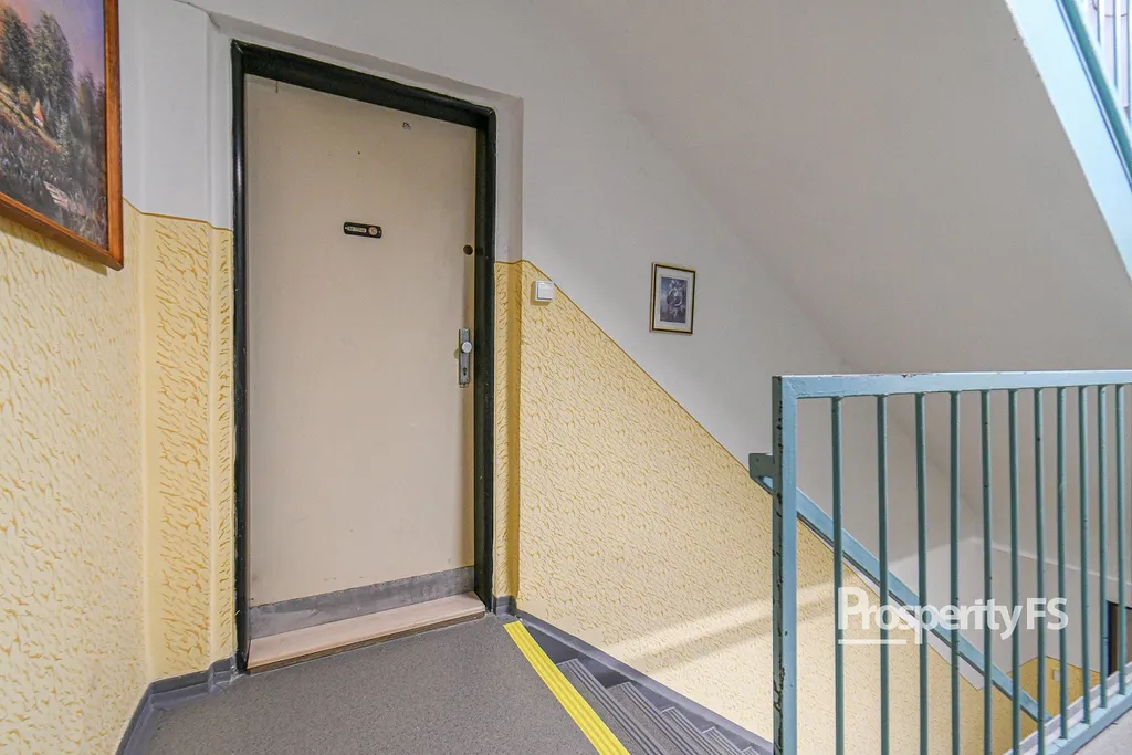 Dispozice bytu tvoří samostatný obytný pokoj a oddělená kuchyň, což zajišťuje dostatek soukromí i praktičnosti při každodenním užívání. Dále je k dispozici koupelna se sprchovým koutem a toaletou, dále se nachází prostorná vstupní chodba s dostatkem místa pro úložné řešení.