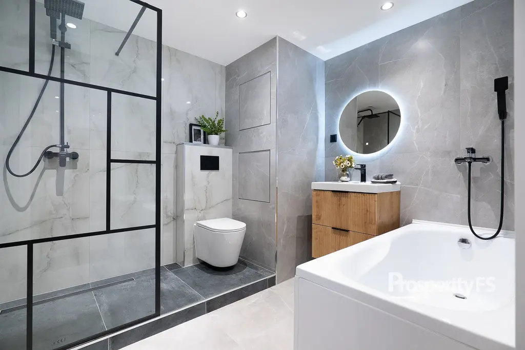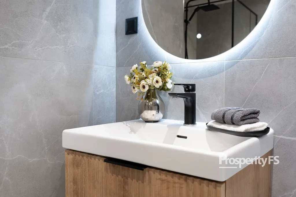 Součástí vybavení je kuchyňská linka s plynovým sporákem. Koupelna je vybavena WC, sprchovým koutem, vanou a umyvadlem. V bytě jsou plovoucí podlahy, vytápění je řešeno ústředním dálkovým vytápěním prostřednictvím radiátorů. Byt je napojen na dálkový vodovod, elektřina 230 V. Vybavení v ložnicích je pouze staging.
