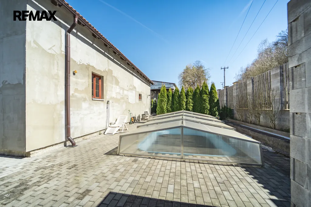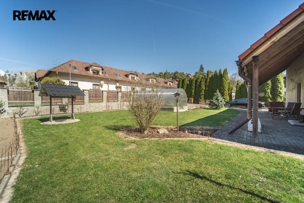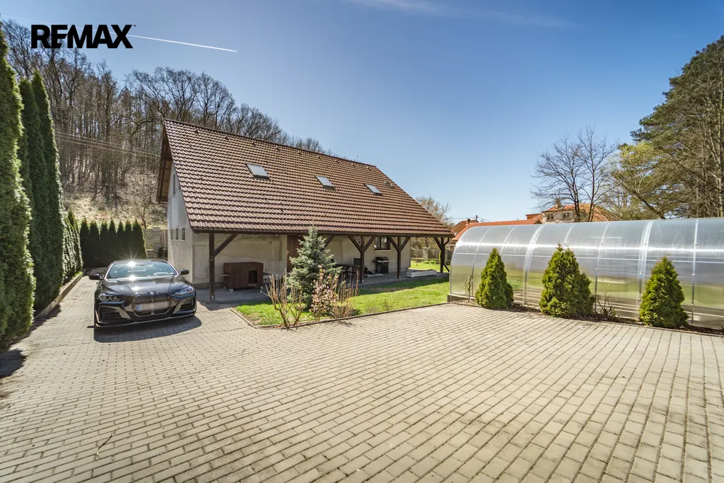 Velkým benefitem je rovinatý pozemek o výměře 773 m², který nabízí dostatek prostoru pro odpočinek i aktivní trávení volného času. Na zahradě se nachází bazén, skleník, altán a samozřejmostí je také parkování až pro 6 automobilů přímo na pozemku.