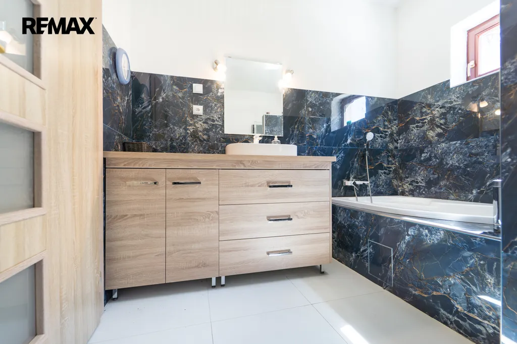 Dům byl zkolaudován v roce 2021 a nabízí podlahovou plochu přes 200 m². Dispozice je řešena velmi prakticky – v přízemí se nachází prostorný obývací pokoj s kuchyňským koutem, koupelna, chodba, technická místnost a zádveří. V podkroví pak najdete čtyři samostatné pokoje a druhou koupelnu, což zajišťuje dostatek soukromí pro celou rodinu.