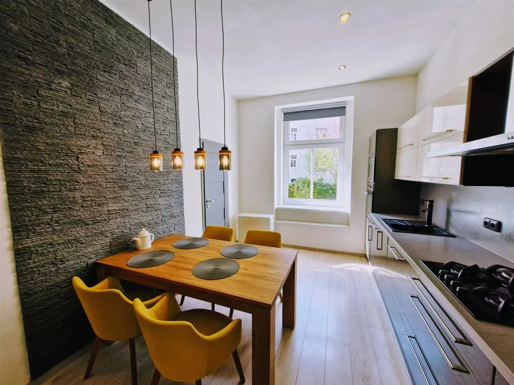 Exkluzivně nabízíme k prodeji byt dispozicí 2+1 o podlahové ploše 62 m2, situovaný v 1.patře cihlového domu. Byt prošel cca před 5 lety kompletní náročnou rekonstrukcí má protihluková okna, kompletní nové rozvody, omítky, podlahy, vybavení koupelny i kuchyně apod. Je nabízen s vybavením na fotografiích tedy i s vestavěnými skříněmi a elektrospotřebiči, dálkovým ovládáním žaluzií, osvětlením atd., jak je vidět na fotografiích. Byl užíván přímo majiteli opotřebení bytu i vybavení je minimální . Okna neprůchozích pokojů jsou orientována do ulice a směrem k velkému parku, kuchyně a koupelna pak do vnitrobloku. Za domem se nachází malá společná zahrádka. Parkovat lze v ulici díky modré zóně pro rezidenty dostatek parkovacích míst. K bytu patří sklepní kóje v 1.PP domu. Dům je velmi pečlivě udržovaný a spravovaný. Energetický průkaz ve zpracování tepelné ztráty jsou díky masivním zdem a kvalitním oknům minimální. Náklady na bydlení pro 2 osoby: fond oprav činí 1352 Kč, vodné a stočné cca 900 Kč, plyn 300 Kč a elektřina cca 5000 Kč za měsíc (celkem cca 7 500 Kč/měsíc včetně energií). Výhodná poloha bytu ob ulici od kampusu univerzity, v dochozí vzdálenosti od centra města a jeho stav a vybavení znamená velmi dobrou perspektivu pro pronájmy i pro vlastní bydlení Bližší informace ráda podám.