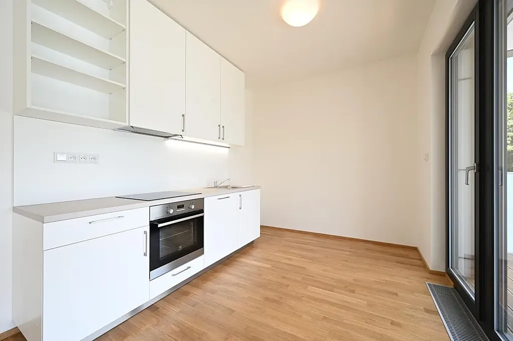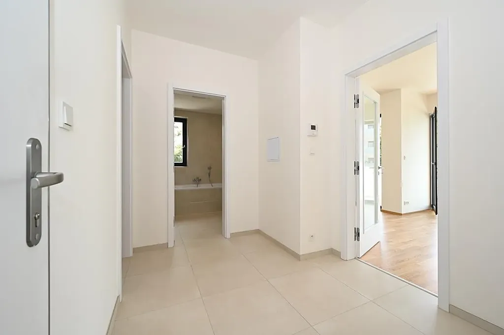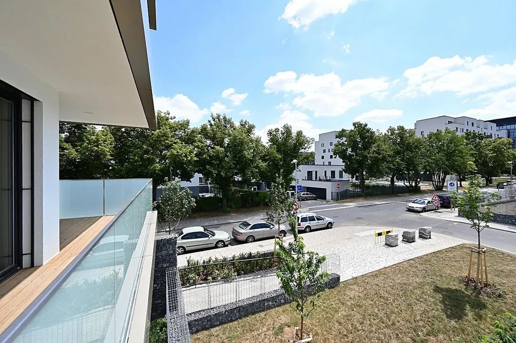 Pronájem moderního tichého bytu 2+kk 58 m2 s jihovýchodní orientací, jižní krytou terasou 12 m2, na východ orientovanou ložnicí, vše dostupné z centrální haly. Stejně tak koupelna s oddělenou toaletou.