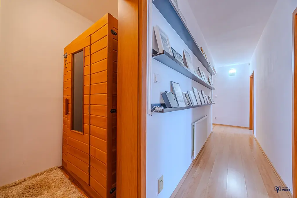 Pro chvíle odpočinku a regenerace je k dispozici soukromá sauna, milovníky vína potěší stylový vinný sklípek. Dům nabízí dostatek prostoru jak pro velkou rodinu, tak i pro kombinaci bydlení a práce z domova.
