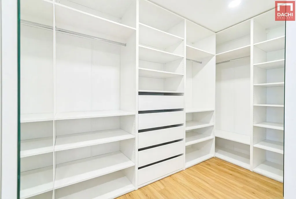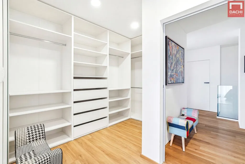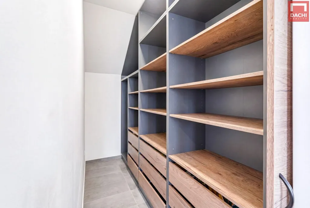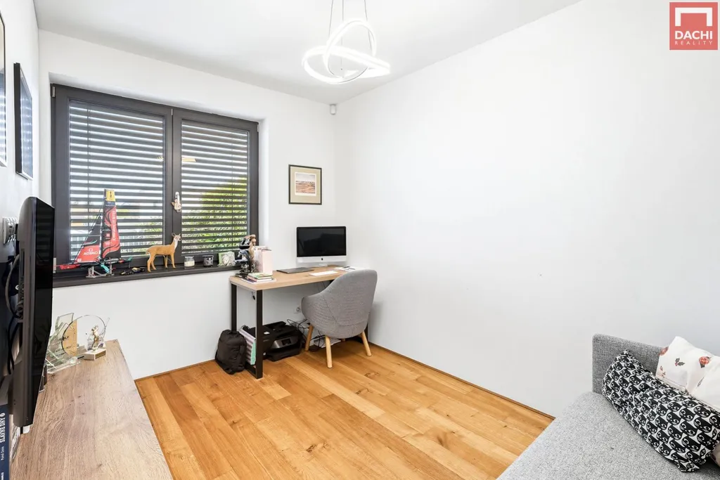 V přízemí se dále nachází samostatný pokoj vhodný jako pracovna či pokoj pro hosty, koupelna se sprchovým koutem pro návštěvy, praktická spižírna a samostatná prádelna.