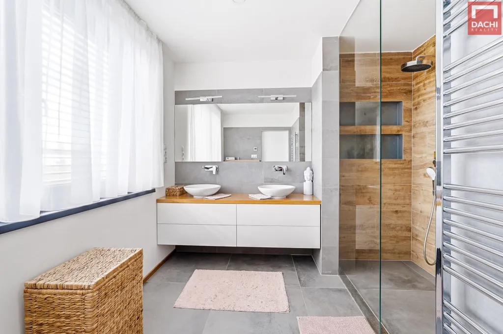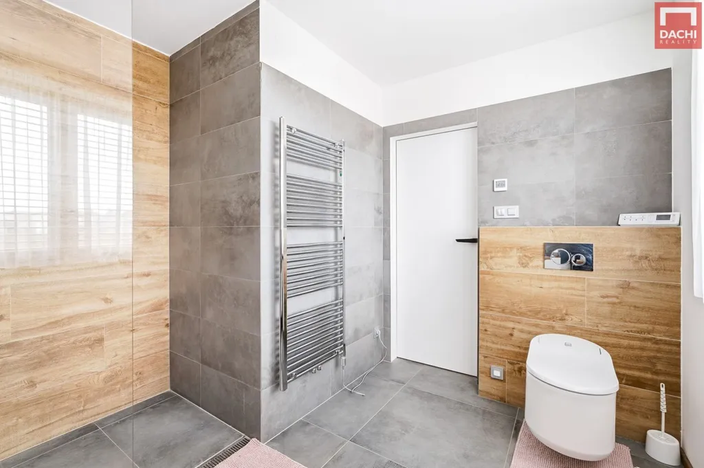 Samotný dům je kvalitní cihlová novostavba z broušených tvárnic HELUZ, kde byl kladen důraz na poctivé provedení, detail a celkovou kvalitu zpracování. Interiér je doplněn designovými prvky a působí velmi elegantně, luxusně a zároveň plně funkčně pro každodenní život.