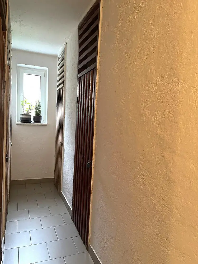 Vstupními dveřmi vejdeme do velké předsíně s vestavěnými skříněmi o velikosti cca 6,12 m², ze které je následně vstup do dalších místností. V předsíni se nachází samostatná toaleta o velikosti cca 0,8 m² a koupelna o velikosti cca 2 m², která disponuje sprchovým koutem a umyvadlem. Z předsíně je také vstup do prostorné kuchyně o velikosti cca 9 m², která je vybavena sporákem s pečící troubou, ledničkou s mrazákem a spížkou. Na konci chodby je vstup do obývacího pokoje o velikosti cca 21,7 m², ze kterého je vstup na balkón o velikosti cca 4 m² s krásným výhledem do zeleně. Na pravé straně obývacího pokoje se nachází vstup do ložnice o velikosti cca 12,8 m². Poslední pokoj je o velikosti cca 9,3 m².