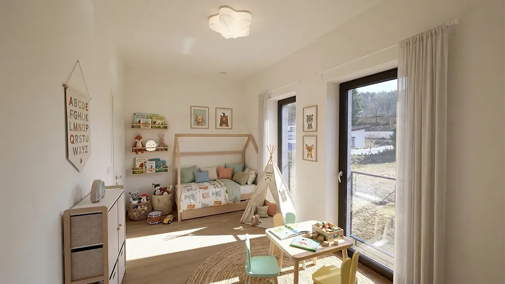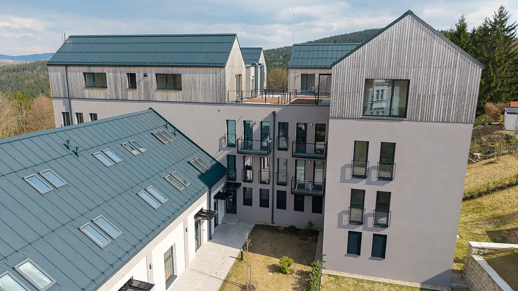 Samozřejmostí je vysoký standard provedení – kvalitní vinylové podlahy s akustickou podložkou, francouzská okna s izolačním trojsklem, moderní koupelny se sanitou Grohe a velkoformátové obklady, příprava na venkovní žaluzie apod.