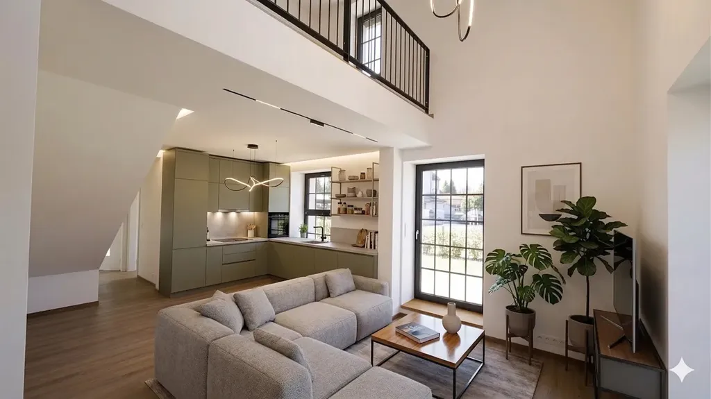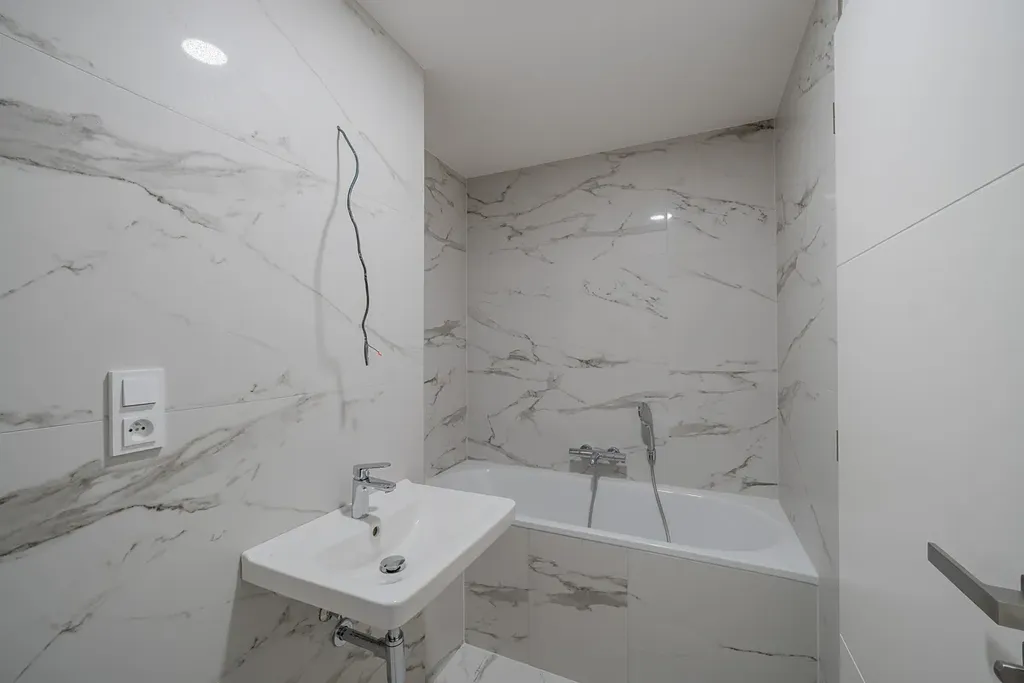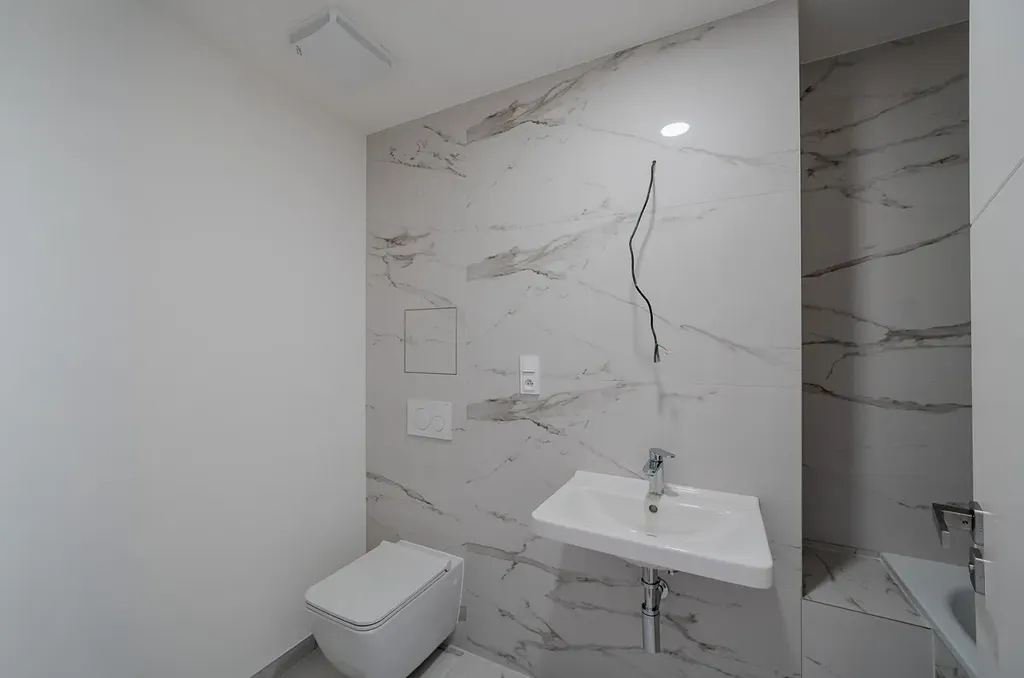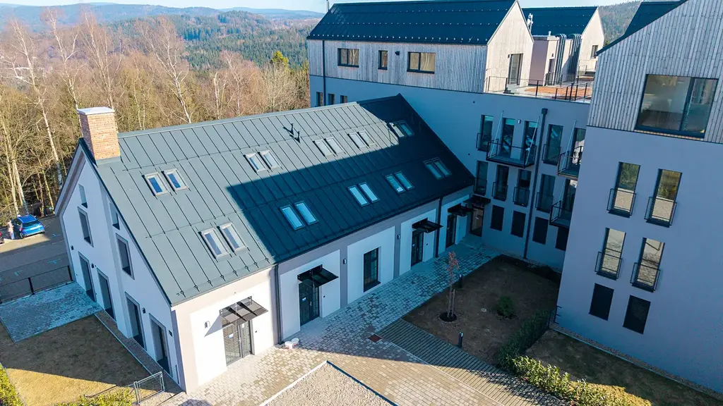 Samozřejmostí je vysoký standard provedení – kvalitní vinylové podlahy s akustickou podložkou, francouzská okna s izolačním trojsklem, moderní koupelny se sanitou Grohe a velkoformátové obklady.