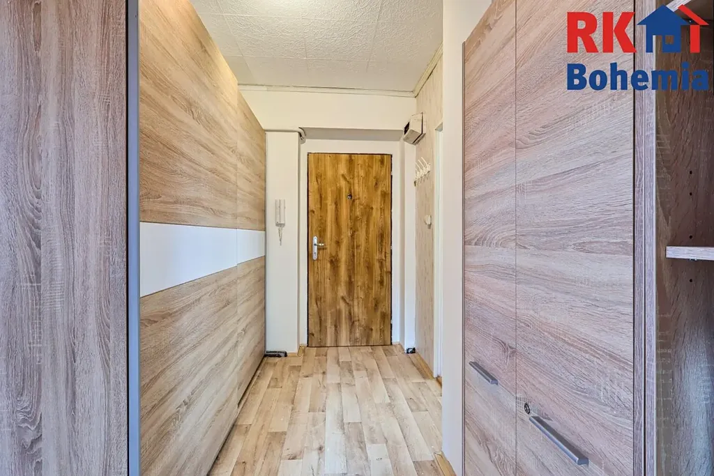 Součástí kuchyňské linky je kombinovaný sporák s digestoří, myčka a dřez. V předsíni jsou vestavěné skříně.