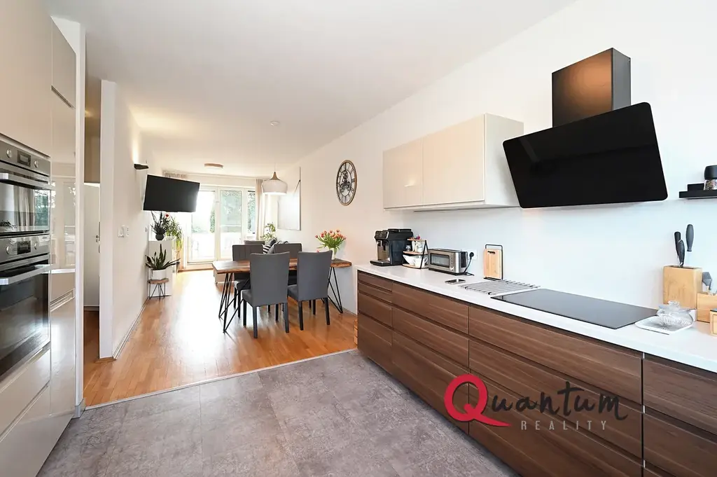 Exkluzivně nabízíme k pronájmu řadový rodinný dům o dispozici 5+kk, s užitnou plochou 185 m² a zahradou o výměře 154 m² se zahradním domkem. Dům je situovaný v žádané lokalitě Praha 5 – Jinonice, v bezprostředním sousedství mezinárodní německé školy. Dům se nachází v klidné ulici, která je soukromou komunikaci jen pro rezidenty, což zajišťuje minimum provozu.