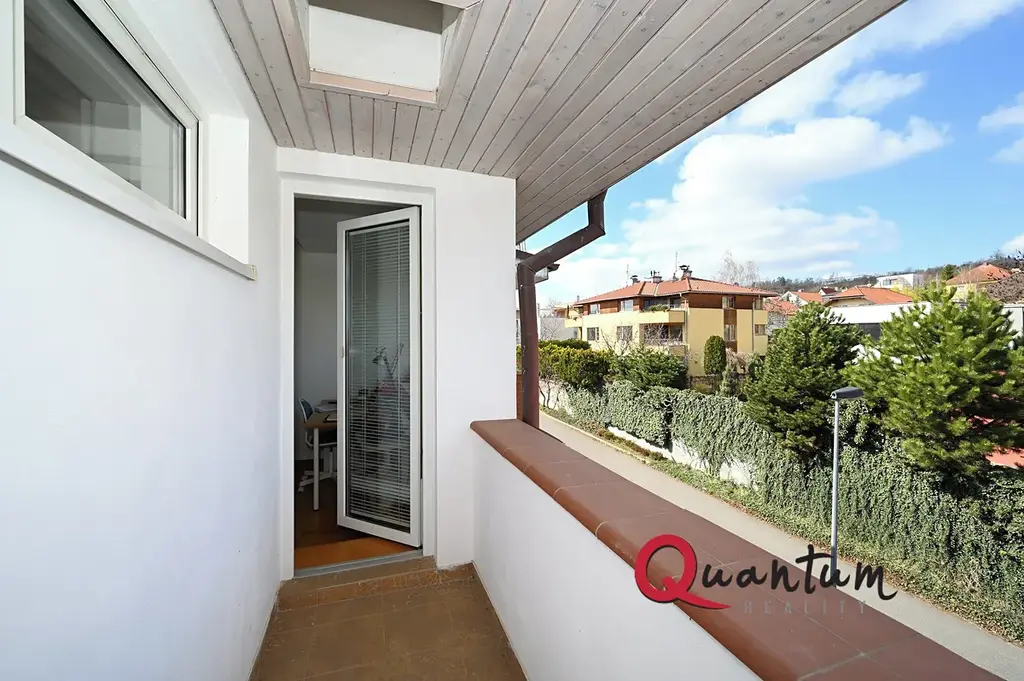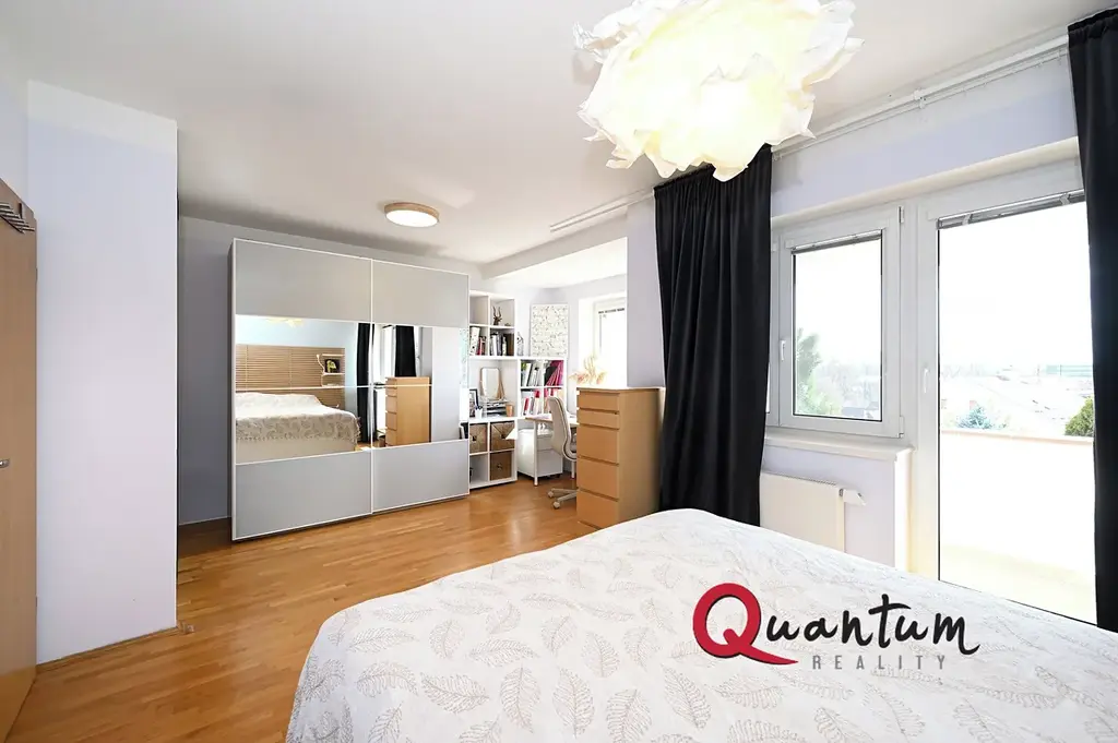 Ve 2. patře je umístěna hlavní ložnice s vestavěnými skříněmi a vstupem na balkon, další ložnice se šatnou a rovněž se vstupem na balkon a koupelna s vanou a toaletou.