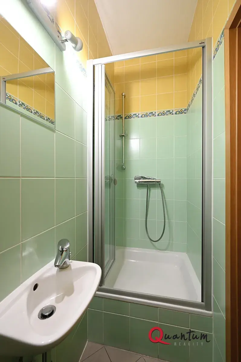 V 1. patře je k dispozici světlý a prostorný obývací prostor s novou plně vybavenou kuchyní s krásným výhledem. Z obývacího pokoje je vstup na balkon. Na tomto podlaží se dále nachází další místnost a koupelna se sprchovým koutem a toaletou.