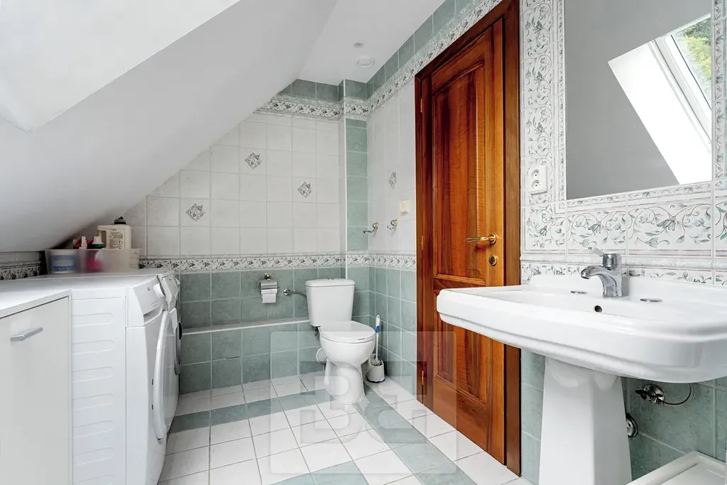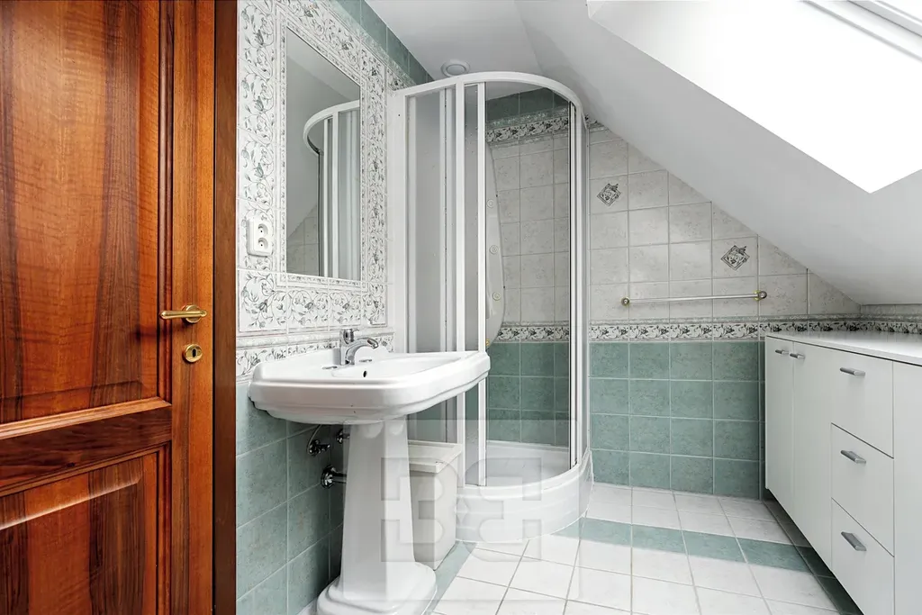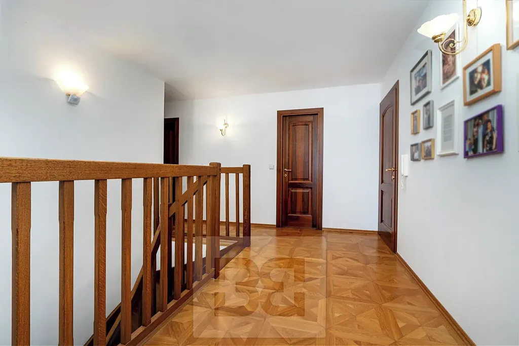 V patře domu najdete čtyři ložnice, které poskytnou dostatek soukromí všem členům rodiny. Nechybí ani druhá koupelna. Jedna z ložnic má vlastní WC a vstup na balkon (8 m²) s krásným výhledem do zahrady a okolní přírodu. Uprostřed chodby je vstup na půdu, vhodná pro uložení sezónních věcí.