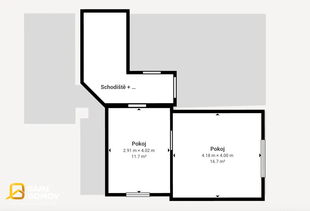 Patro: 2 obytné pokoje