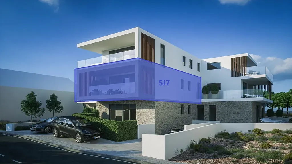 Nabízený apartmán SJ7 o ploše 88,67 m2 je situovaný v 1. patře, orientovaný na západ a nabízí výhled na moře. Sestává z chodby, 2 ložnic, 2 koupelen a kuchyně s jídelnou a obývacím pokojem s přístupem na terasu o rozloze 18,34 m2. V ceně apartmánu je také 1 garážové parkovací místo a skladovací místnost v suterénu.
