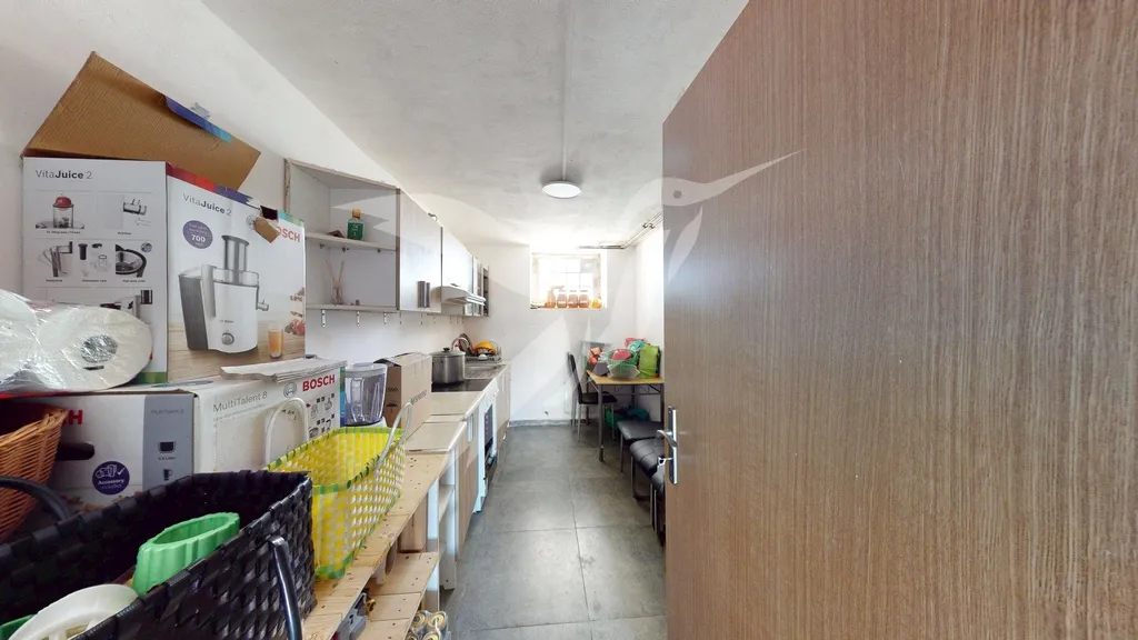 1.podlaží nabízí další obytný či užitný prostor: místnost s kuchyňskou linkou, koupelnu, samostatné WC, technickou místnost s elektrickým kotlem a bojlerem a bývalý sklep na uhlí, který může sloužit jako skladovací prostor.