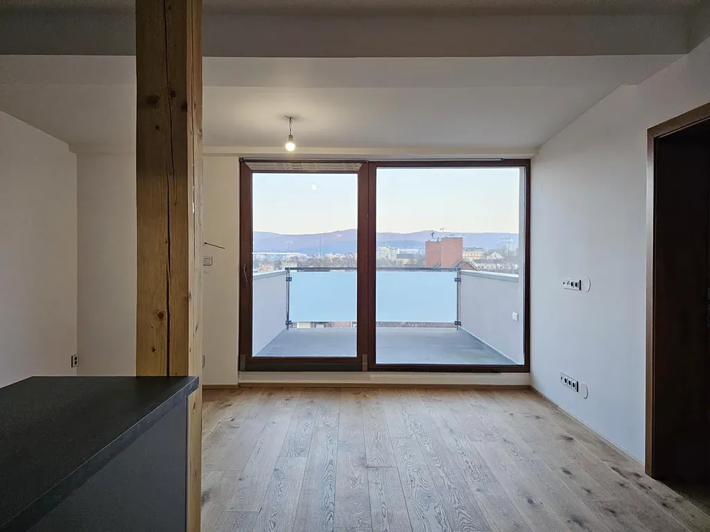Exkluzivně nabízíme k prodeji nově vybudovaný podkrovní byt. Jde o vestavbu bytu 4+kk v podkroví cihlového bytového domu o pouze šesti bytech. Dům se nachází v širším středu města, v části Jeřáb. Lokalita nabízí výbornou občanskou vybavenost v docházkové vzdálenosti (MŠ, SŠ, restaurace, potraviny, supermarket, lékař, pošta atd.) a rychlou dostupnost do centra města ať už autem, nebo MHD (tramvaj i autobus).