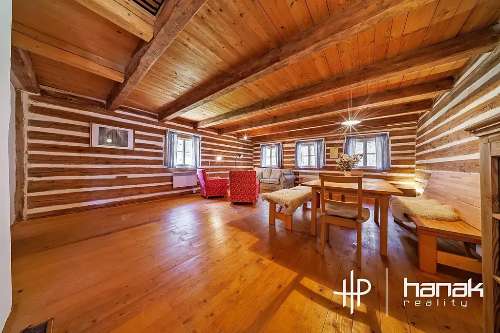 Interiér domu podtrhuje atmosféru nemovitosti, která je zasazena v úžasném prostředí ve vyhledávané lokalitě jak pro rekreaci, tak i pro podnikání formou krátkodobého nájmu.