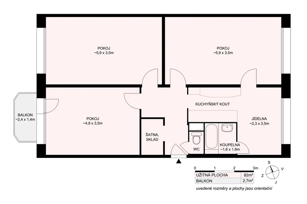 Uvedené výměry jsou orientační. Veškeré zveřejněné údaje obsažené v tomto inzerátu mají pouze informativní charakter a nejsou nabídkou ve smyslu § 1731 nebo § 1732 občanského zákoníku, ani se nejedná o veřejný příslib dle § 1733 občanského zákoníku.