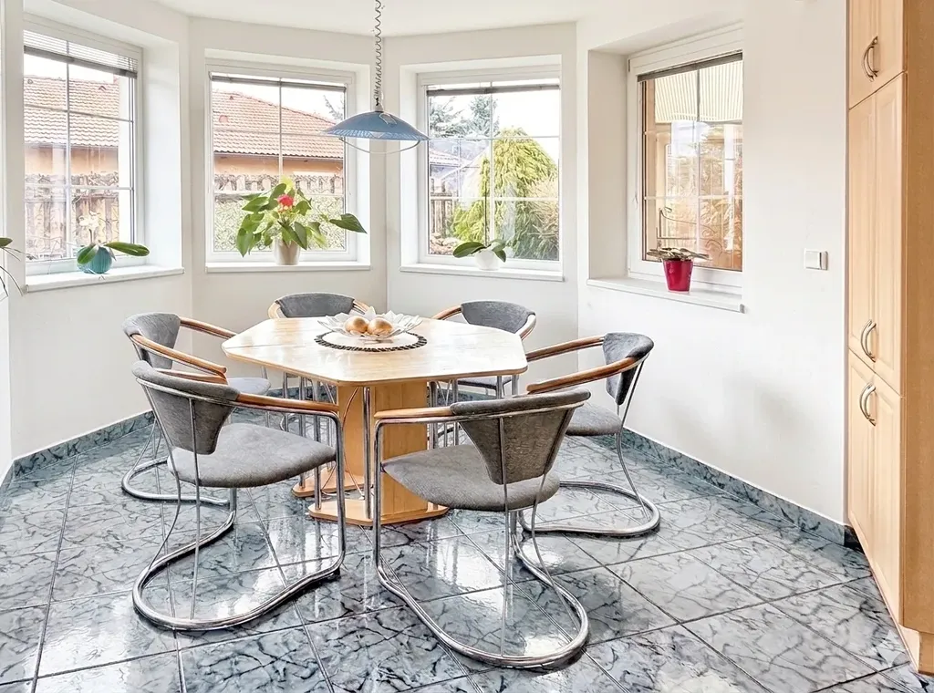 Rodinný dům o dispozici 5+1 se zimní zahradou nabízí praktické uspořádání místností a dostatek prostoru pro všechny členy domácnosti. Dům z roku 2002 je ve velmi dobrém, udržovaném stavu a připraven k okamžitému užívání.